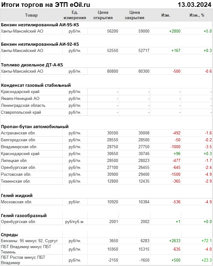 Итоги торгов на ЭТП eOil.ru 13 марта 2024