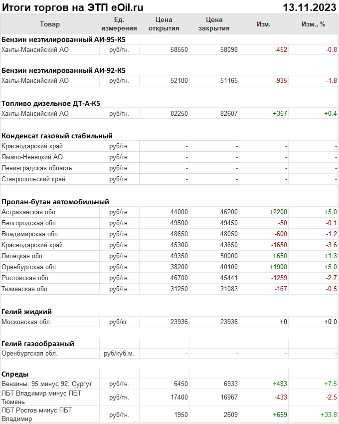 Итоги торгов на ЭТП eOil.ru 13 ноября 2023