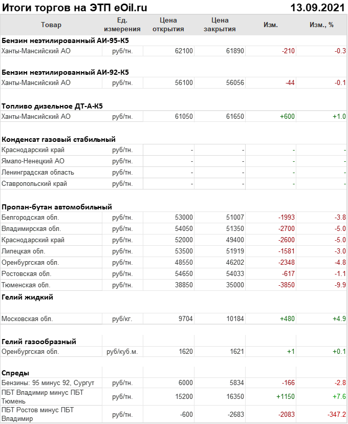 Итоги торгов на ЭТП eOil.ru 13 сентября 2021