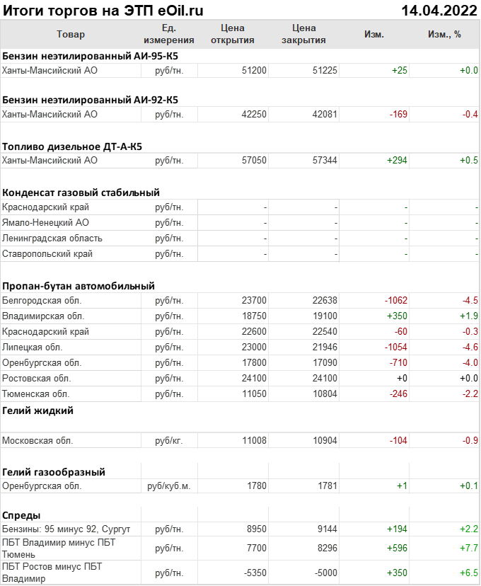 Итоги торгов на ЭТП eOil.ru 14 апреля 2022