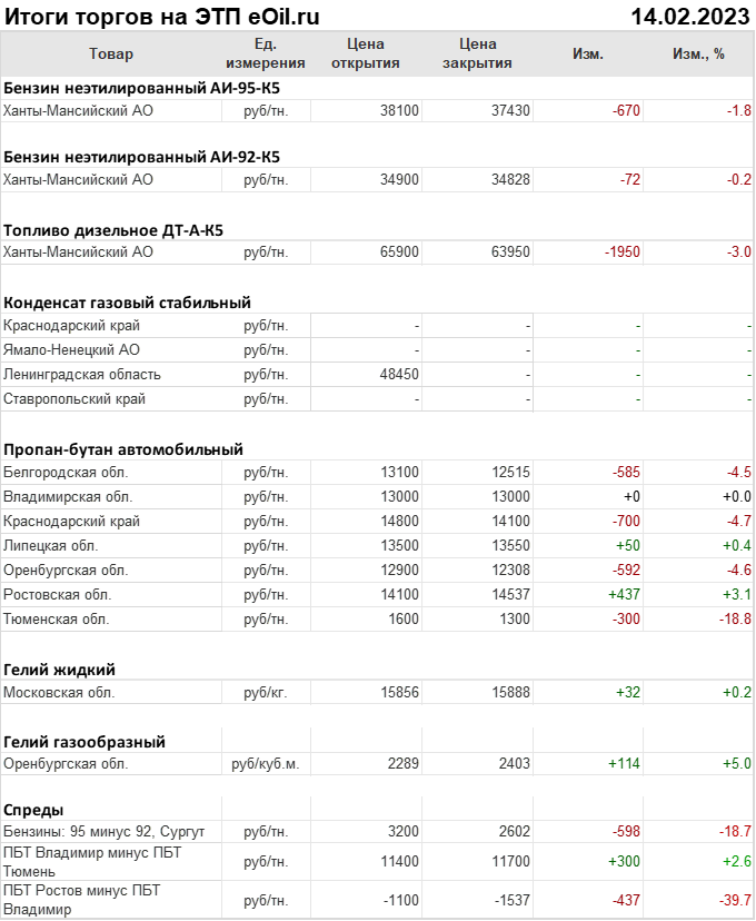 Итоги торгов на ЭТП eOil.ru 14 февраля 2023