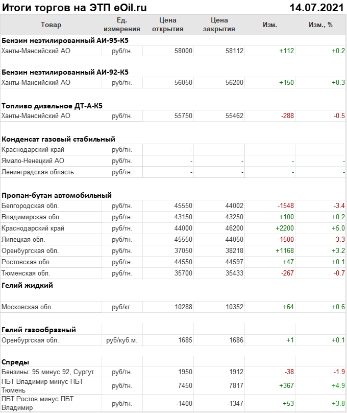 Итоги торгов на ЭТП eOil.ru 14 июля 2021