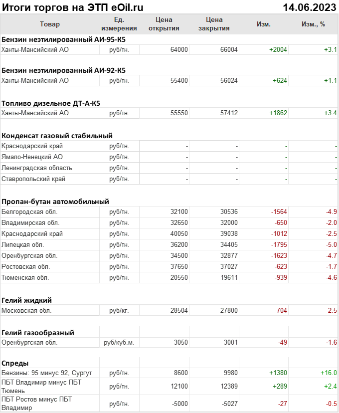 Итоги торгов на ЭТП eOil.ru 14 июня 2023