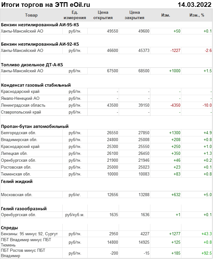 Итоги торгов на ЭТП eOil.ru 14 марта 2022