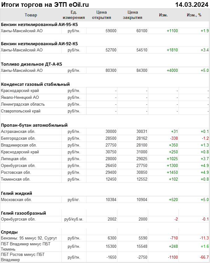 Итоги торгов на ЭТП eOil.ru 14 марта 2024