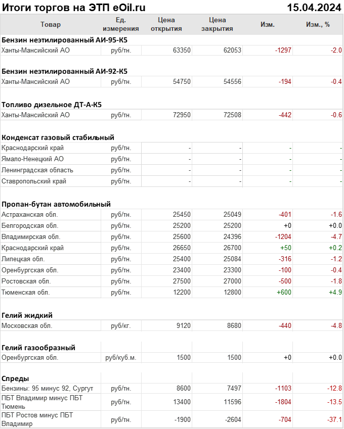 Итоги торгов на ЭТП eOil.ru 15 апреля 2024