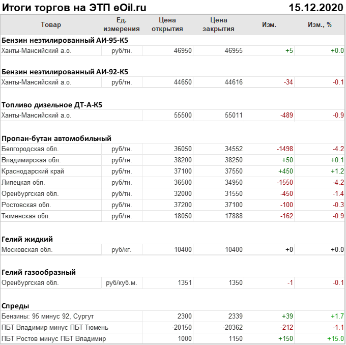 Итоги торгов на ЭТП eOil.ru 15 декабря 2020