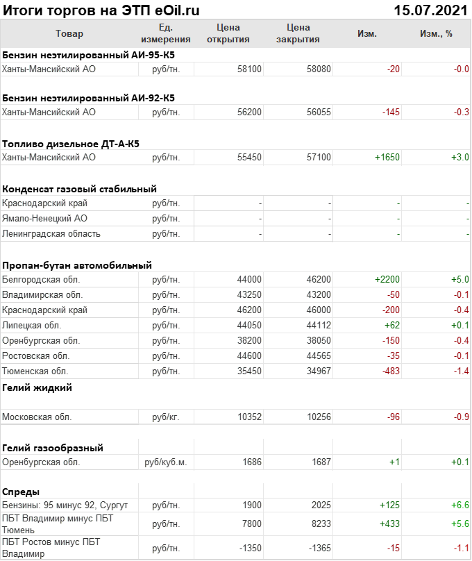 Итоги торгов на ЭТП eOil.ru 15 июля 2021