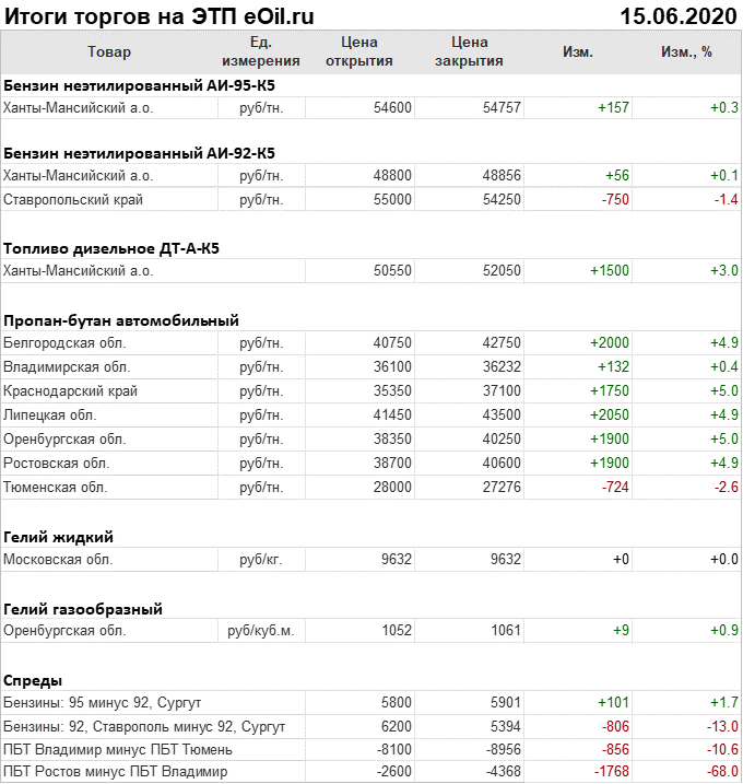 Итоги торгов на ЭТП eOil.ru 15 июня 2020