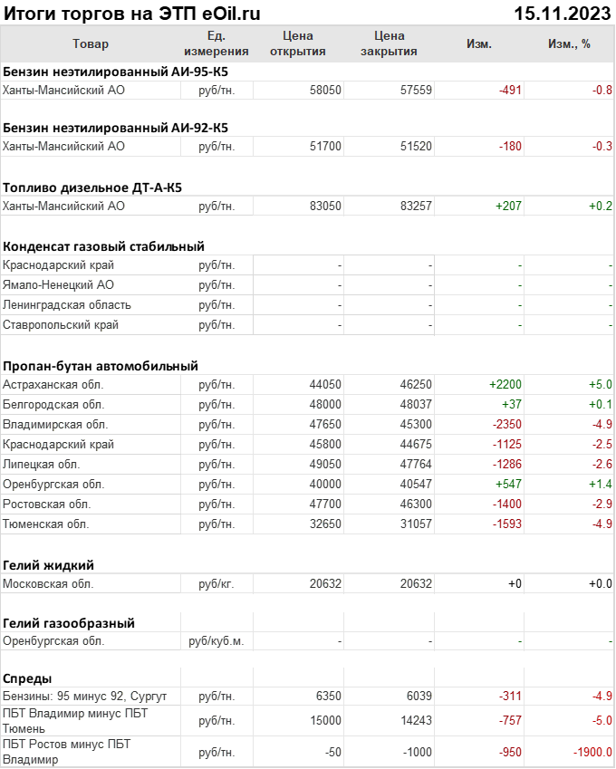 Итоги торгов на ЭТП eOil.ru 15 ноября 2023