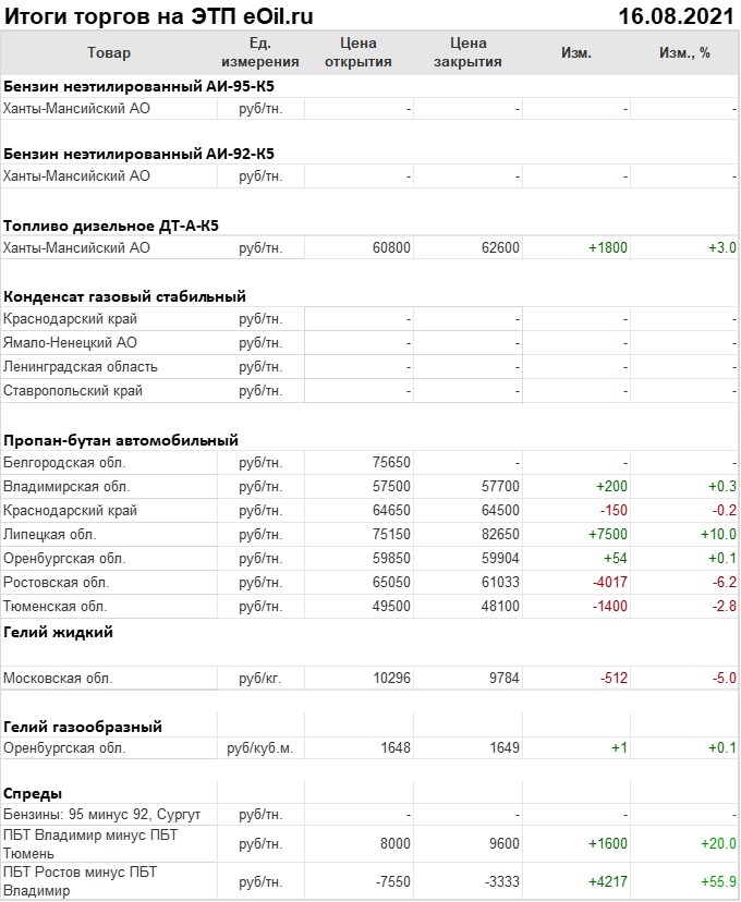 Итоги торгов на ЭТП eOil.ru 16 августа 2021