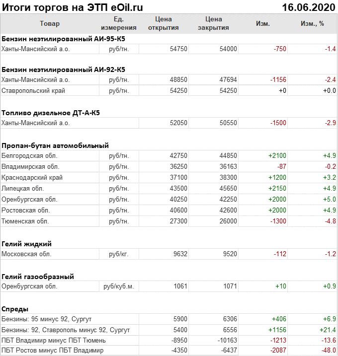 Итоги торгов на ЭТП eOil.ru 16 июня 2020