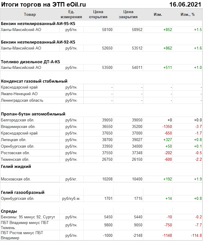 Итоги торгов на ЭТП eOil.ru 16 июня 2021