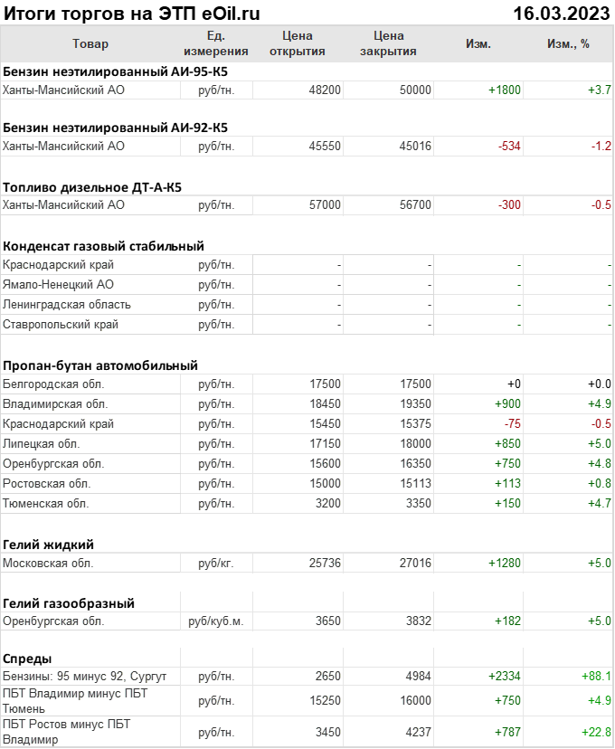 Итоги торгов на ЭТП eOil.ru 16 марта 2023