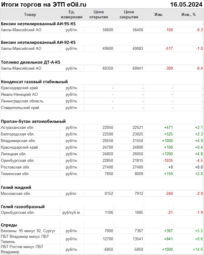 Итоги торгов на ЭТП eOil.ru 16 мая 2024