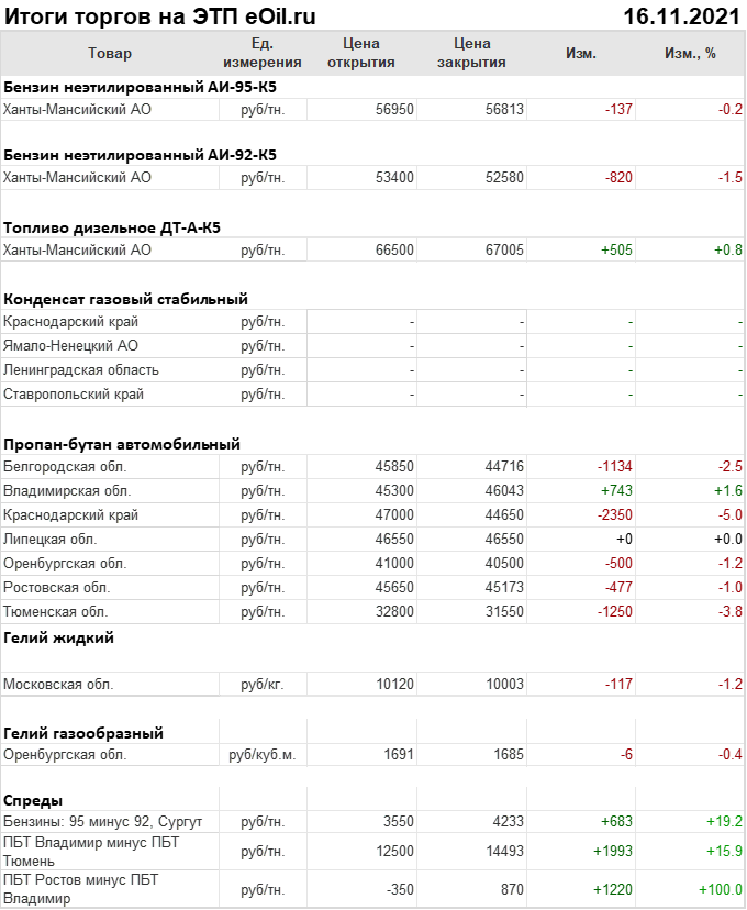 Итоги торгов на ЭТП eOil.ru 16 ноября 2021