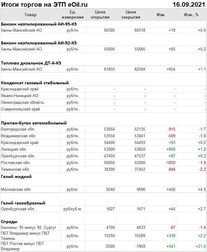 Итоги торгов на ЭТП eOil.ru 16 сентября 2021