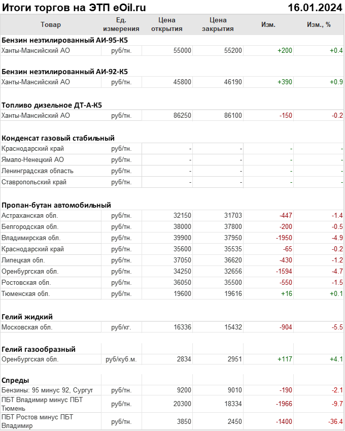 Итоги торгов на ЭТП eOil.ru 16 января 2024