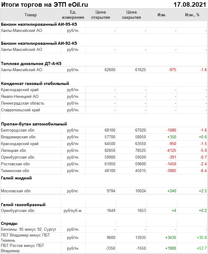 Итоги торгов на ЭТП eOil.ru 17 августа 2021