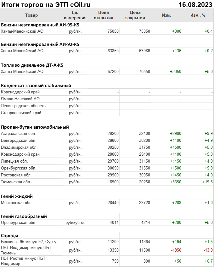 Итоги торгов на ЭТП eOil.ru 17 августа 2023