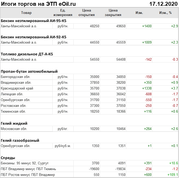 Итоги торгов на ЭТП eOil.ru 17 декабря 2020