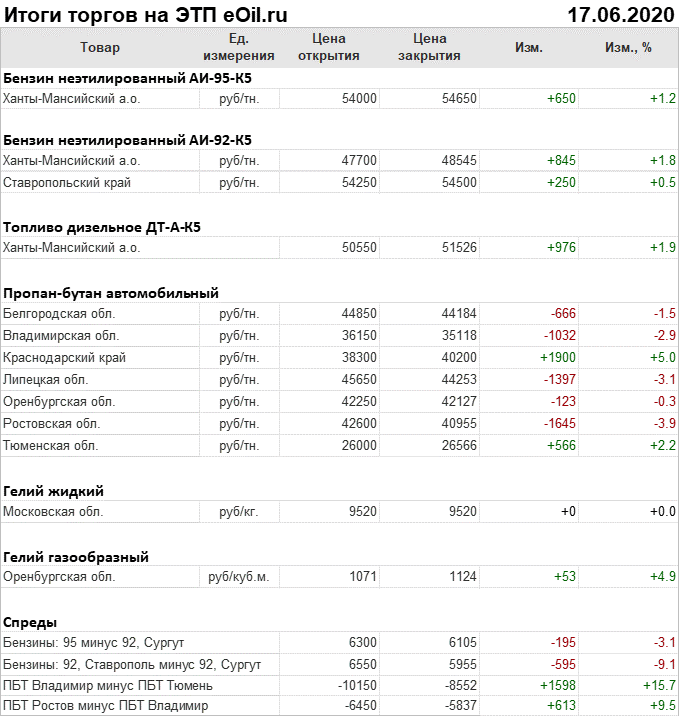 Итоги торгов на ЭТП eOil.ru 17 июня 2020
