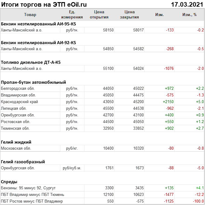 Итоги торгов на ЭТП eOil.ru 17 марта 2021
