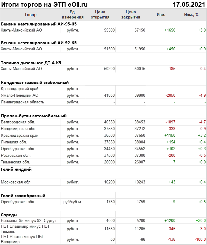 Итоги торгов на ЭТП eOil.ru 17 мая 2021