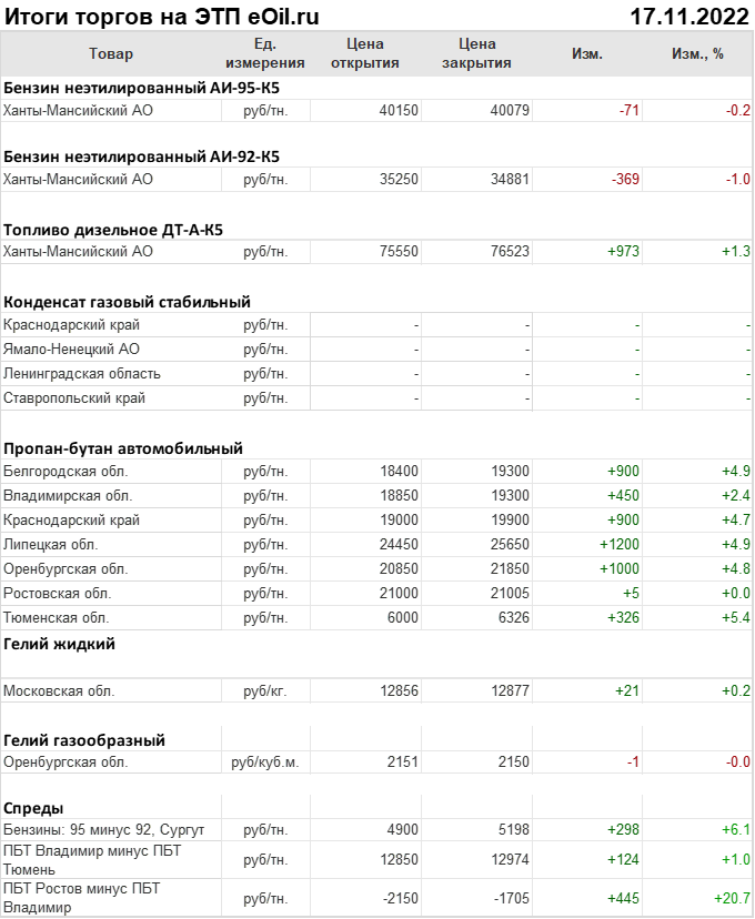 Итоги торгов на ЭТП eOil.ru 17 ноября 2022