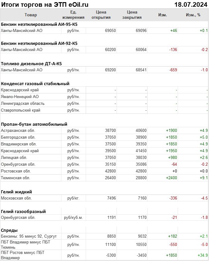 Итоги торгов на ЭТП eOil.ru 18 июля 2024