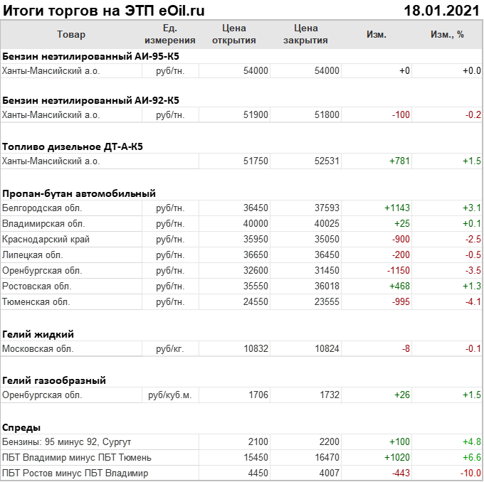 Итоги торгов на ЭТП eOil.ru 18 января 2021