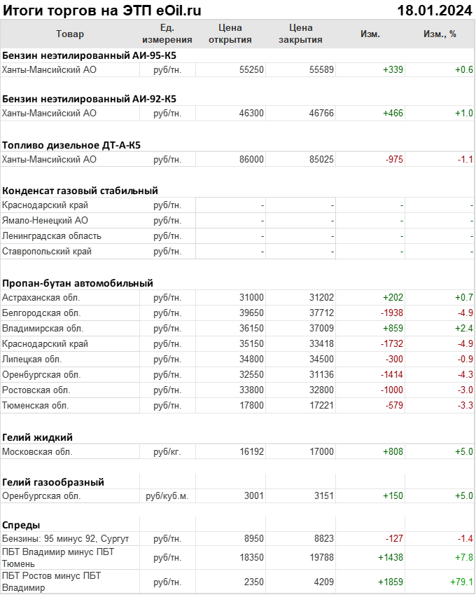 Итоги торгов на ЭТП eOil.ru 18 января 2024