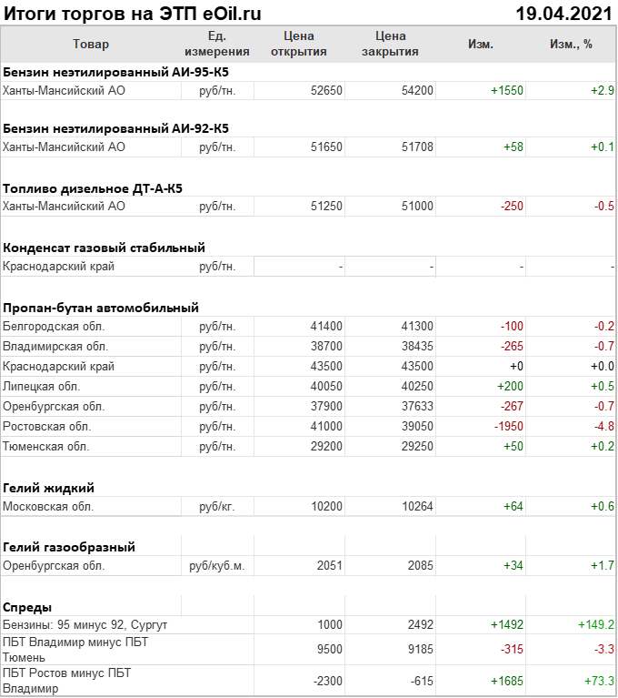 Итоги торгов на ЭТП eOil.ru 19 апреля 2021
