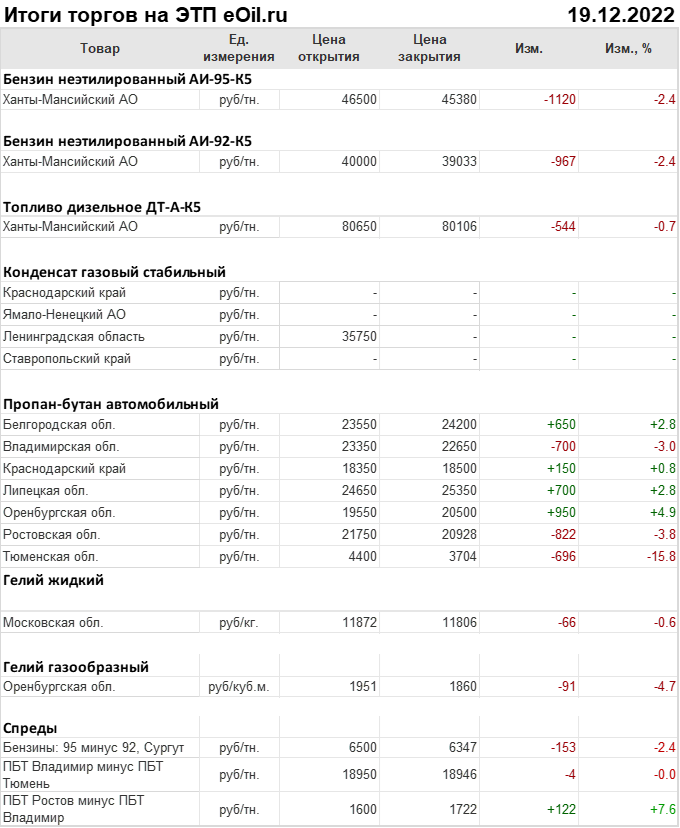 Итоги торгов на ЭТП eOil.ru 19 декабря 2022