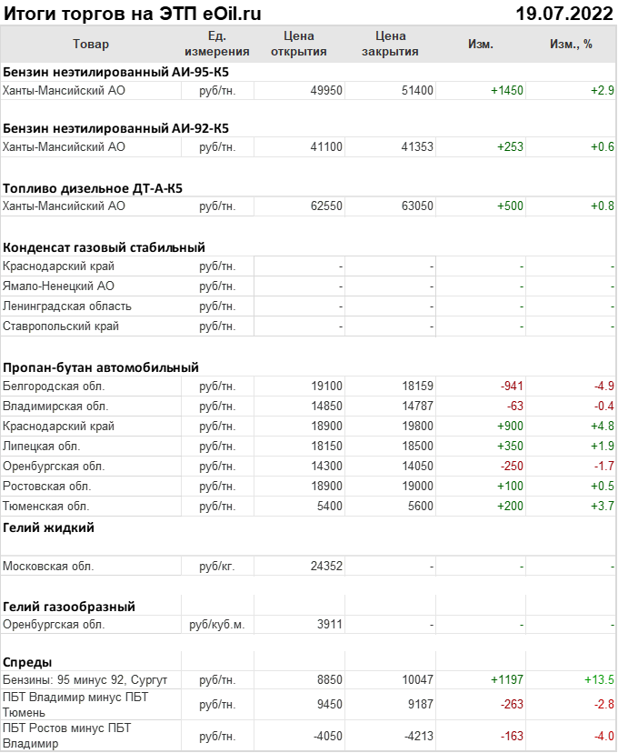 Итоги торгов на ЭТП eOil.ru 19 июля 2022