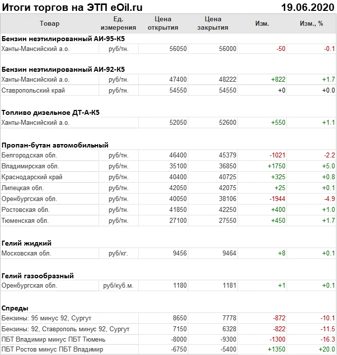 Итоги торгов на ЭТП eOil.ru 19 июня 2020