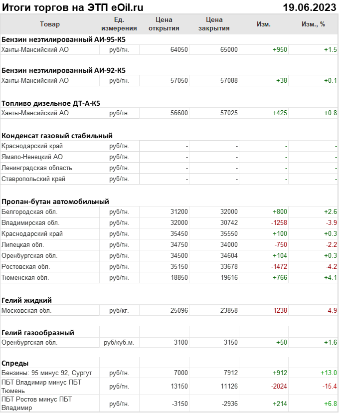 Итоги торгов на ЭТП eOil.ru 19 июня 2023