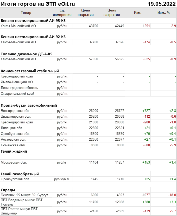Итоги торгов на ЭТП eOil.ru 19 мая 2022