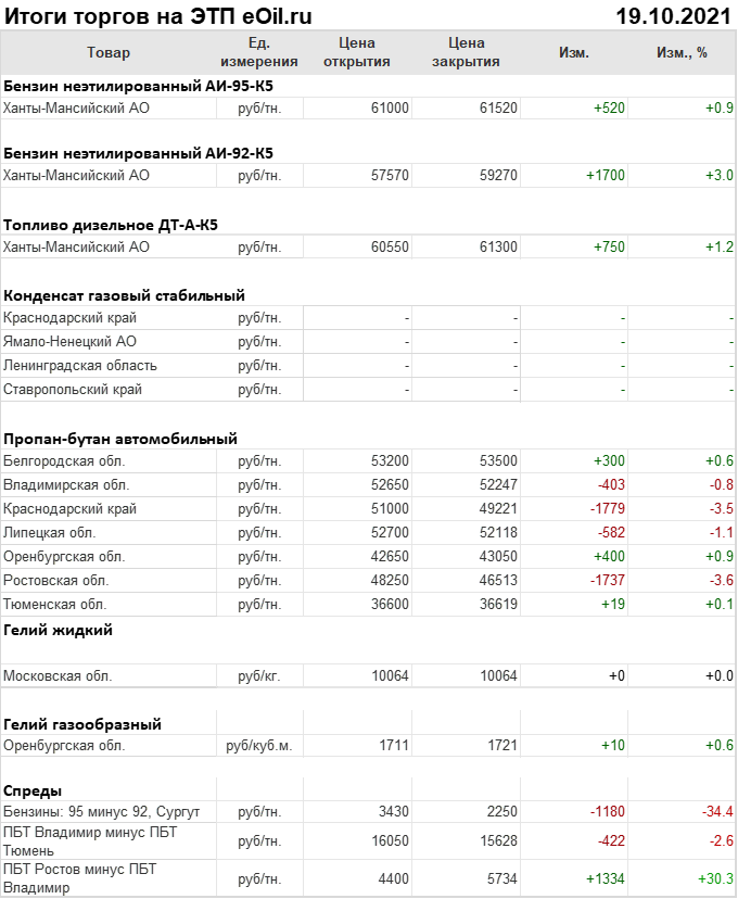 Итоги торгов на ЭТП eOil.ru 19 октября 2021