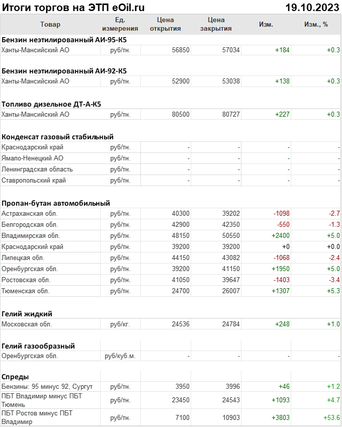 Итоги торгов на ЭТП eOil.ru 19 октября 2023