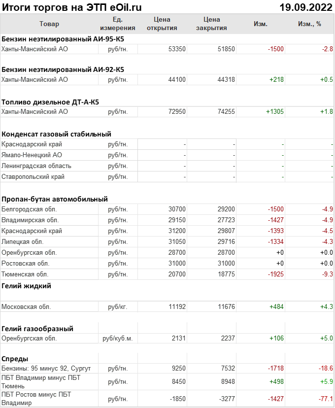 Итоги торгов на ЭТП eOil.ru 19 сентября 2022