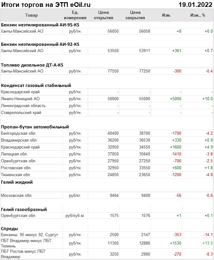 Итоги торгов на ЭТП eOil.ru 19 января 2022