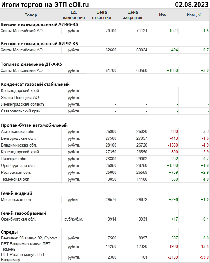 Итоги торгов на ЭТП eOil.ru 2 августа 2023