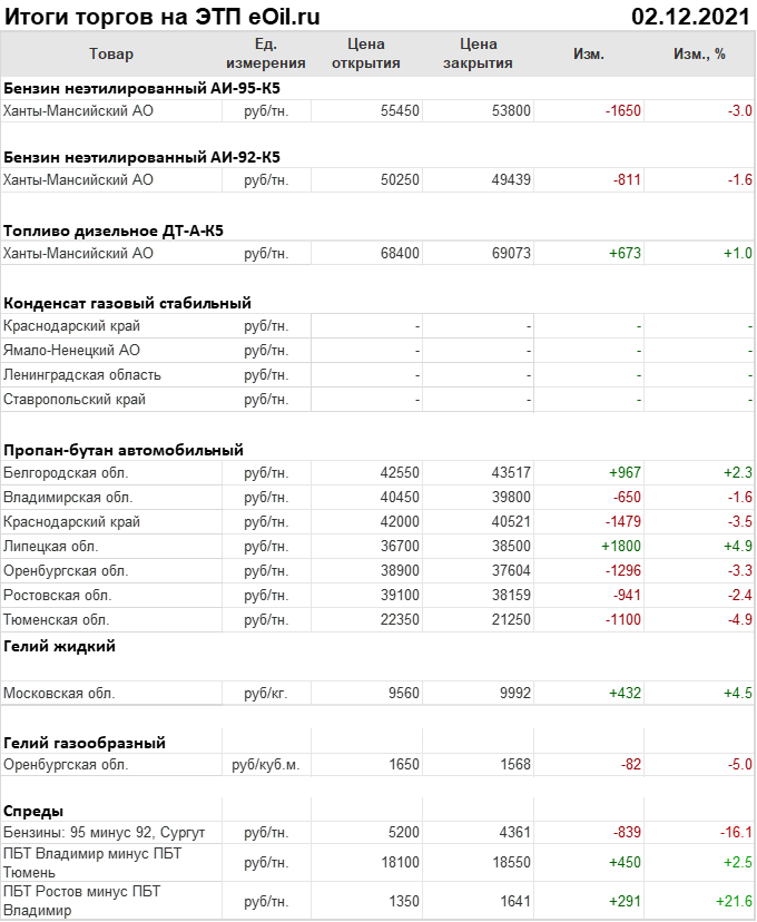Итоги торгов на ЭТП eOil.ru 2 декабря 2021