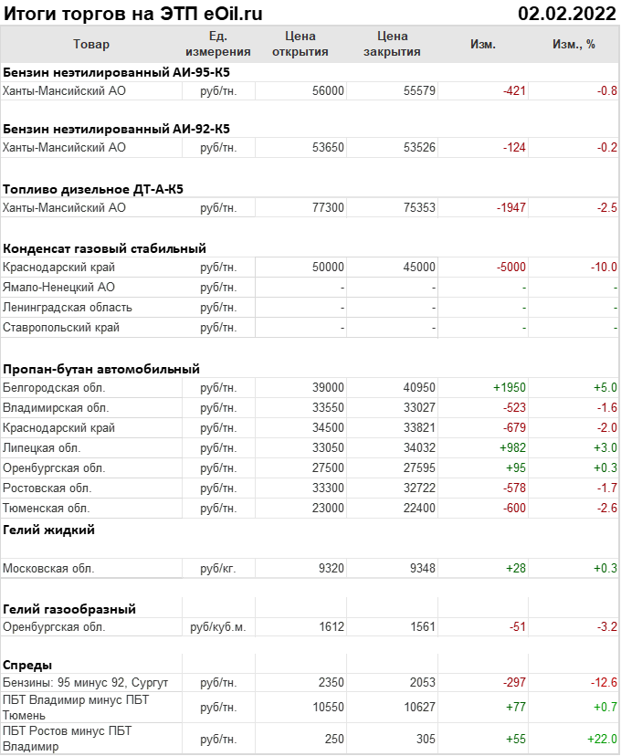 Итоги торгов на ЭТП eOil.ru 2 февраля 2022