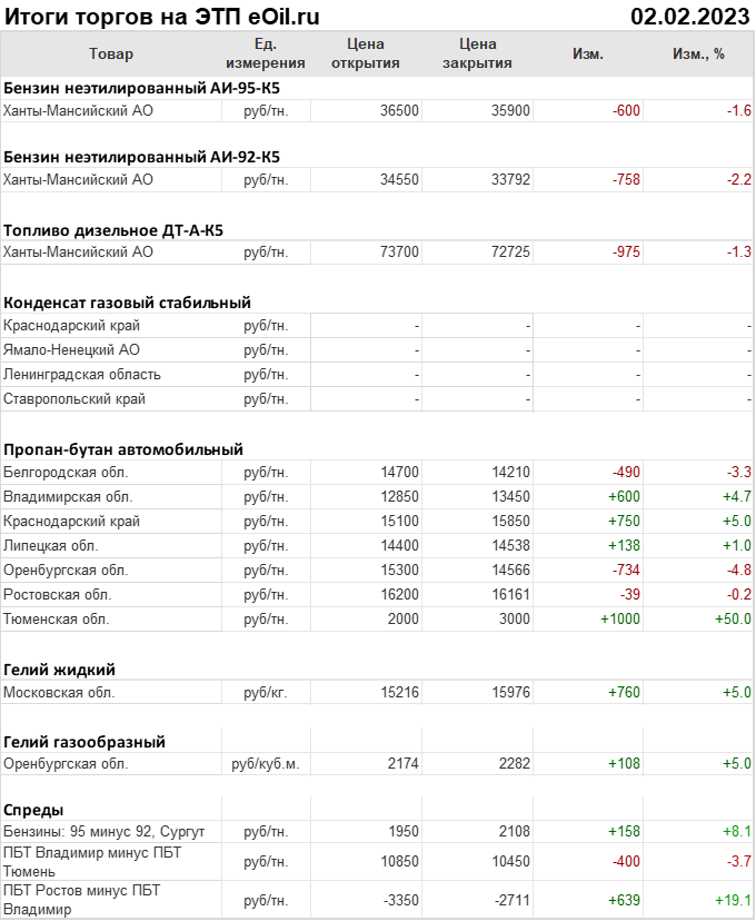 Итоги торгов на ЭТП eOil.ru 2 февраля 2023