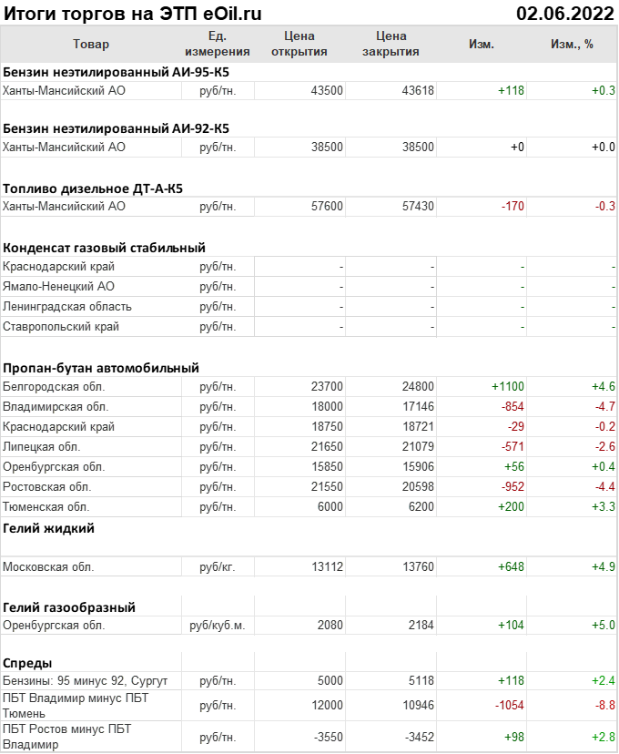 Итоги торгов на ЭТП eOil.ru 2 июня 2022