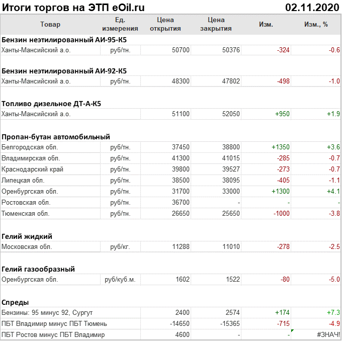 Итоги торгов на ЭТП eOil.ru 2 ноября 2020