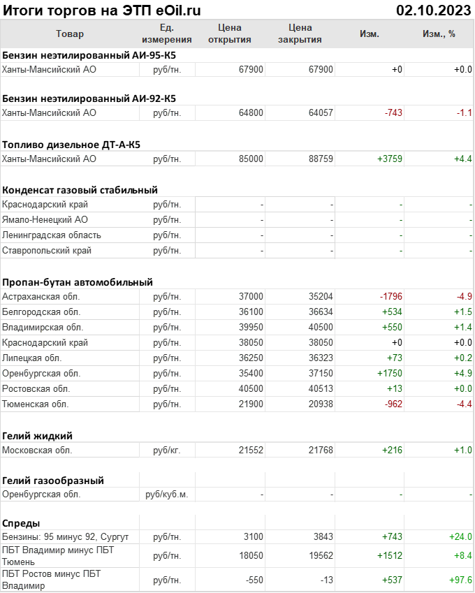 Итоги торгов на ЭТП eOil.ru 2 октября 2023