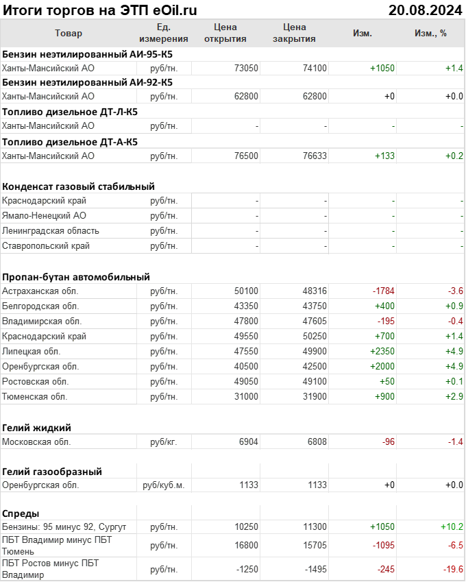 Итоги торгов на ЭТП eOil.ru 20 августа 2024
